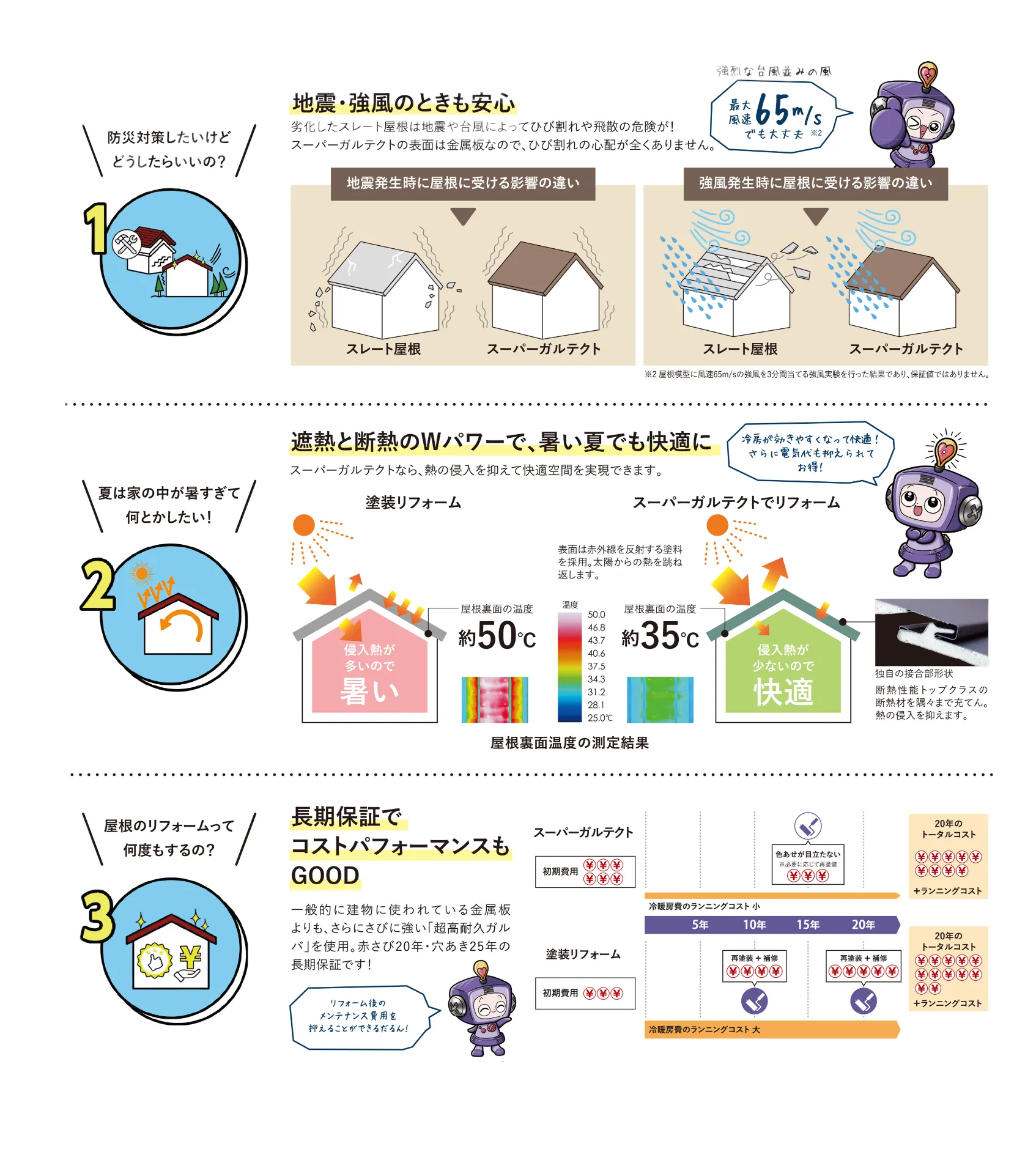 住まいを再生できるカバー工法は、費用と工期のバランスを考えるうえで優れた選択肢の一つです。既存の屋根を覆うだけでなく、住環境をより快適に保つための手段として近年注目を集めています。長年塗装をしてきた実績と知見を活かし、補修に関しても一軒一軒に合ったご提案を行ってまいります。施工の現場では職人一人ひとりがプロとしての責任感を持ち、常に周囲への気配りを欠かさず対応いたします。住まう方だけでなく周囲の方々にも不安を与えない現場運営を柏市を拠点に千葉県中心に大切にしています。